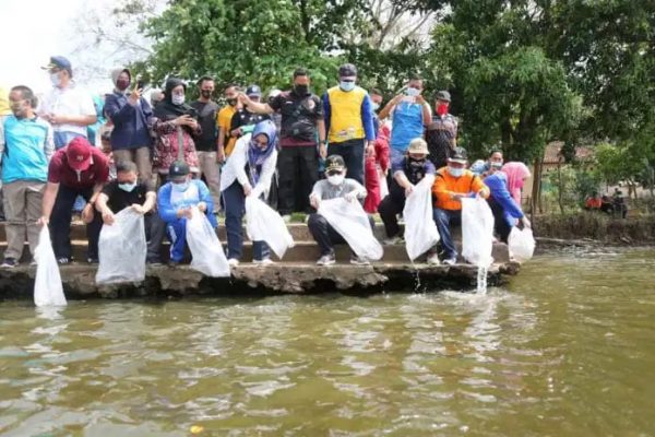 LAMPUNG TIMUR, etalaseinfo.com – Pjs Bupati Lampung Timur, Fredy SM, bersama dengan para kepala OPD melakukan penaburan bibit ikan dan bersih-bersih di seputaran destinasi Danau Beringin Indah di Desa Negara Nabung, Kecamatan Sukadana, Jumat (16/10/2020)