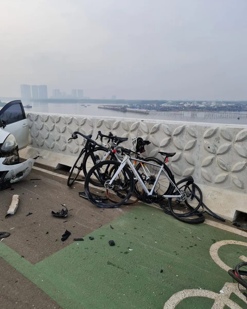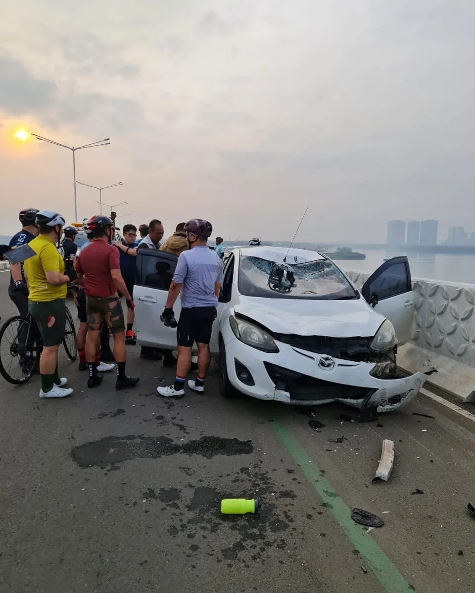 Lampung Siberindo, Tangerang – Seorang pengendara mobil menabrak rombongan pesepeda di Jembatan Baruyungan, Pantai Indah Kapuk, Tangerang (16/10/22).