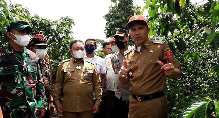 Lampung Barat, etalaseinfo (SMSI) – Bupati Lampung barat H. Parosil Mabsus didampingi Wakil Bupati Drs. Mad hasnurin mengunjungi kebun kopi milik Zulkarnain salah satu warga Pekon Cenggiring, Kecamatan Batu Brak, Selasa (16/11/12).