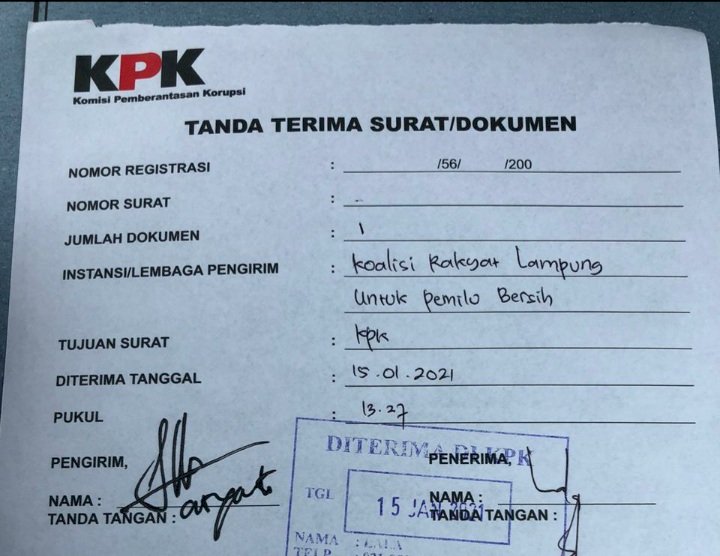 Saibumi.com, Bandar Lampung – Koalisi Rakyat Lampung untuk Pemilu Bersih (KRLUPB) melaporkan Bawaslu Provinsi Lampung ke Komisi Pemberantas Korupsi (KPK) atas dugaan penyalagunaan kewenangan atau gratifikasi, Jumat (15/1) lalu.