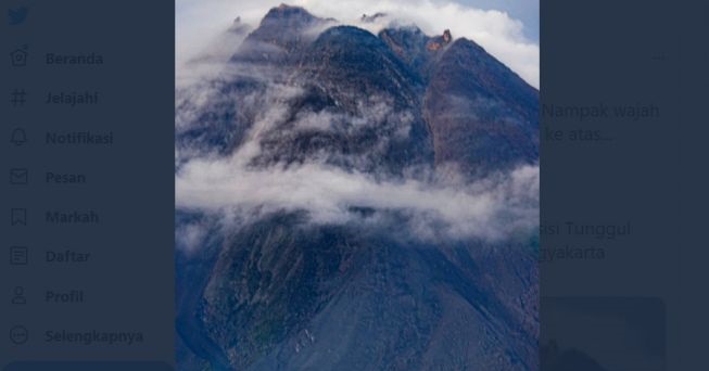 Potret Gunung Merapi tersebut dibagikan oleh akun Twitter @merapi_uncover daimbil dari warganet bernama Ngesti Wuryantoro. Foto yang diunggah menunjukkan kondisi gunung berapi yang tengah diselimuti beberapa kabut tipis. Teksturnya yang berpasir dan penuh lekukan nampak samar di balik kabut.