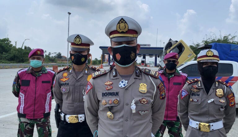 Sat Lantas Polres Lamteng Gelar Ops Keselamatan Krakatau 2021 di Pintu Exit Tol Gunung Sugih