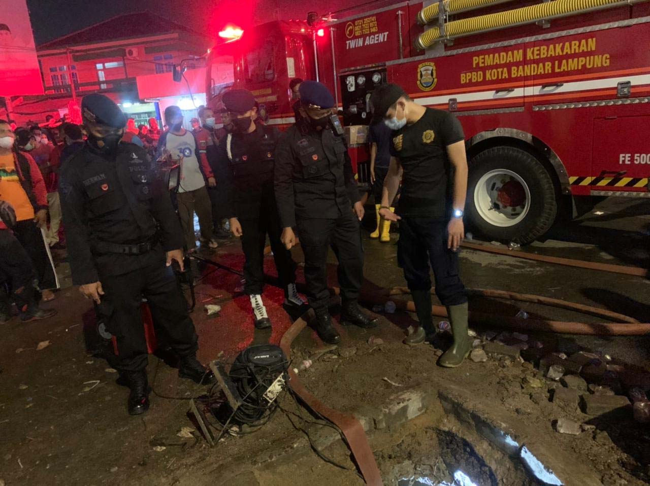 Lampung, etalaseinfo.com (SMSI) -Satuan Brimob Polda Lampung terjun kan Tim SAR guna pencarian korban terbawa drainase di Pasar Tugu Tanjung Karang Timur Bandar Lampung. Minggu (16/05/21)