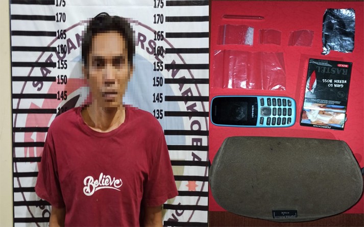 Lanjut AKP Anton, dari lokasi penangkapan petugasnya berhasil menyita barang bukti (BB) berupa satu bungkus plastik klip berisi narkotika jenis sabu dengan berat bruto 0,46 gram, dua bungkus plastik klip kosong ukuran kecil, satu bungkus plastik klip kosong ukuran besar, tabung kaca pyrex, kertas timah rokok berwarna silver, kotak rokok merk Rastel, dompet warna coklat dan handphone (HP) merk Hammer warna biru.