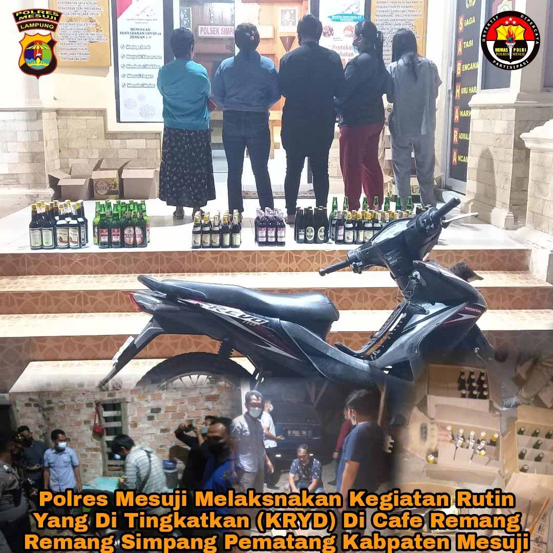 Polres Mesuji, etalaseinfo (SMSI) – Team gabungan Siaga Kompi B Polres Mesuji melaksanakan Kegiatan Rutin Yang Ditingkatkan (KRYD) di caffe Remang – Remang Wilayah Hukum Polsek Simpang Pematang, yang berada di Kecamatan Panca Jaya dan Simpang Pematang, Kabupaten Mesuji. Sabtu (16/10/21) malam, sekira Pukul 21.00 Wib.