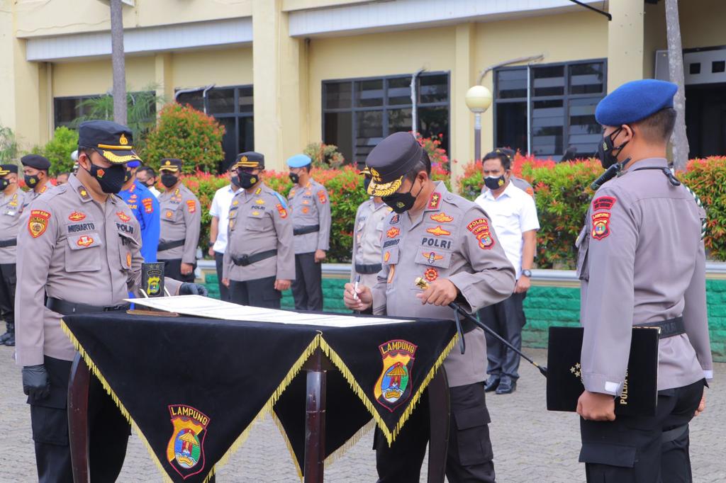 Prosesi serah terima jabatan (Sertijab) dipimpin langsung Kapolda Lampung Irjend Pol Drs Hendro Sugiatno, MM di Mapolda Lampung. Kamis (18/11/21)