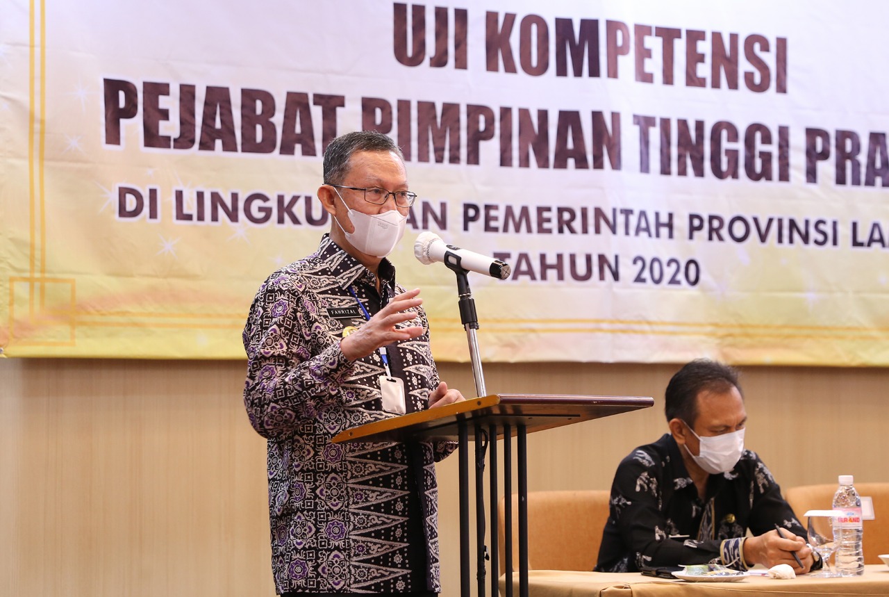 Hal itu menjadi harapan Gubernur saat disampaikan Sekda Provinsi Lampung Fahrizal Darminto ketika membuka uji Kompetensi Jabatan Pimpinan Tinggi Pratama Pemerintah Provinsi Lampung, di Hotel Emersia, Jumat pagi (18/12/2020).