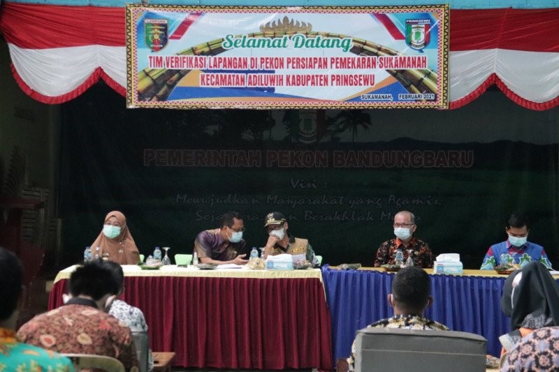 “Pemkab Pringsewu akan melakukan pembangunan daerah di Pekon Sukamanah Kecamatan Adiluwih. Sebagaimana kita ketahui bersama proses pemekaran mengacu pada Peraturan Menteri Nomor 1 Tahun 2017 tentang Penataan Desa dan Peraturan Bupati Pringsewu Nomor 34 Tahun 2020 tentang Pembentukan Pekon Sukamanah di Kecamatan Adiluwih,” katanya.