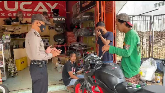 Saat melaksanakan patroli, personil juga memberikan himbauan untuk selalu memakai masker dan paturi protokol kesehatan.(Hms-J)