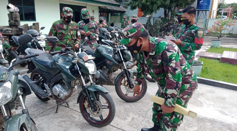 Sidomulyo, etalaseinfo.com Danramil 421-07/SDM Kapten Kav Henri Limbong,  melakukan pengecekan kendaraan Dinas (Randis)  anggota Babinsa, Senin (19/4/2021) dihalaman Koramil setempat.