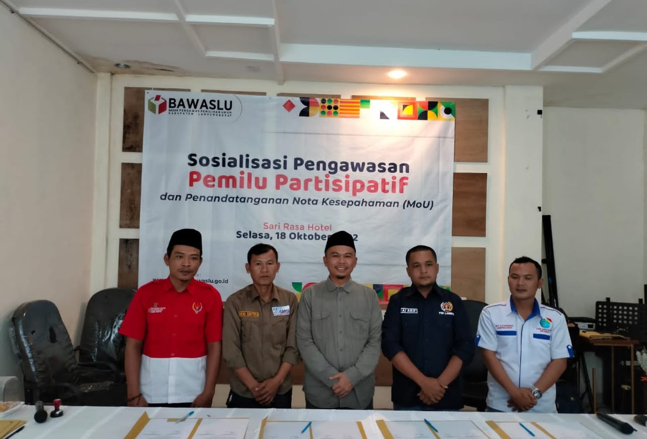 Hal itu tertuang dalam Memorandum of Understanding yang ditandatangani Bawaslu dan SMSI Lampung Barat serta sejumlah organisasi lainnya di Hotel Sari Rasa, Kelurahan Pasarliwa, Kecamatan Balikbukit, Selasa, 18 Oktober 2022.