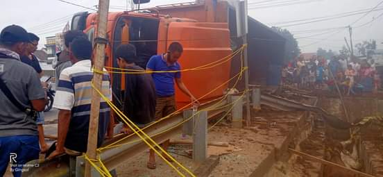Lampung (Bumi1.com) Telah terjadi laka tunggal Truk bermuatan 19 ekor sapi tepanya di jalan raya Ir.Sutami Sribhawono di tikungan Murlan Desa Srimenanti Kecamatan Bandar Sribhawono Kabupaten Lampung Timur. Sabtu (19/09/2020).