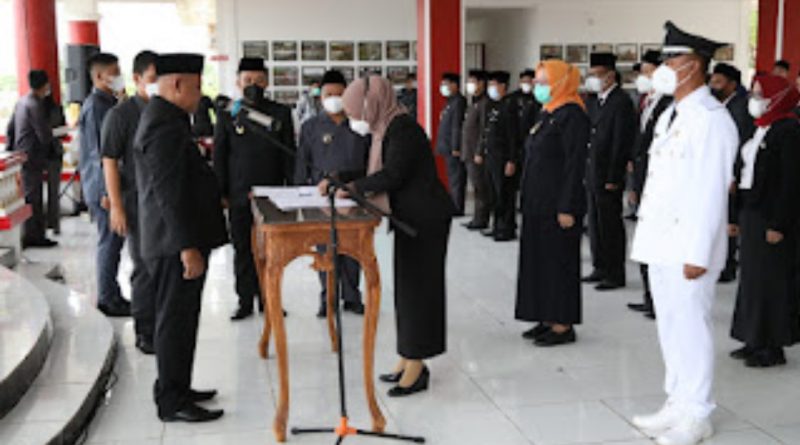 Sebanyak 89 Pejabat Eselon II dan III (Pejabat Administrator) dan Eselon IV (Pejabat Pengawas) di lingkungan Pemkab Lampung Selatan, diambil sumpahnya oleh Bupati Lamsel yang dilaksanakan di Aula Sebuku Komplek Perumahan Bupati Lamsel, Jumat (19/11/2021).