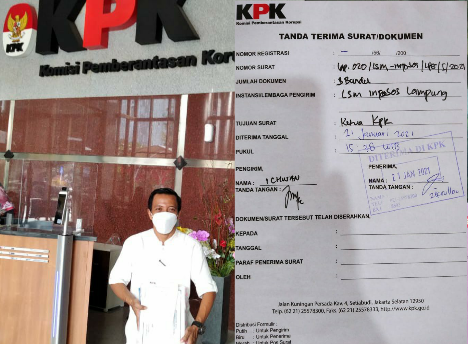 Laporan yang terdata dalam surat tanda terima KPK bernomor Lap.020/LSM-Infosos/LPG/I/2021 tersebut dibawa ke komisi anti rasuah oleh Ketua LSM Infosos Lampung, Ichwan, Kamis (21-1-2021).