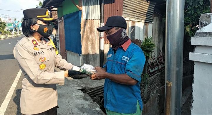 “Pembagian kemasan takjil dan bunga dengan sasaran masyarakat pengguna jalan yang taat menggunakan masker, penyapu jalan serta para tukang ojek,” kata Kompol Heti Patmawati, usai kegiatan.