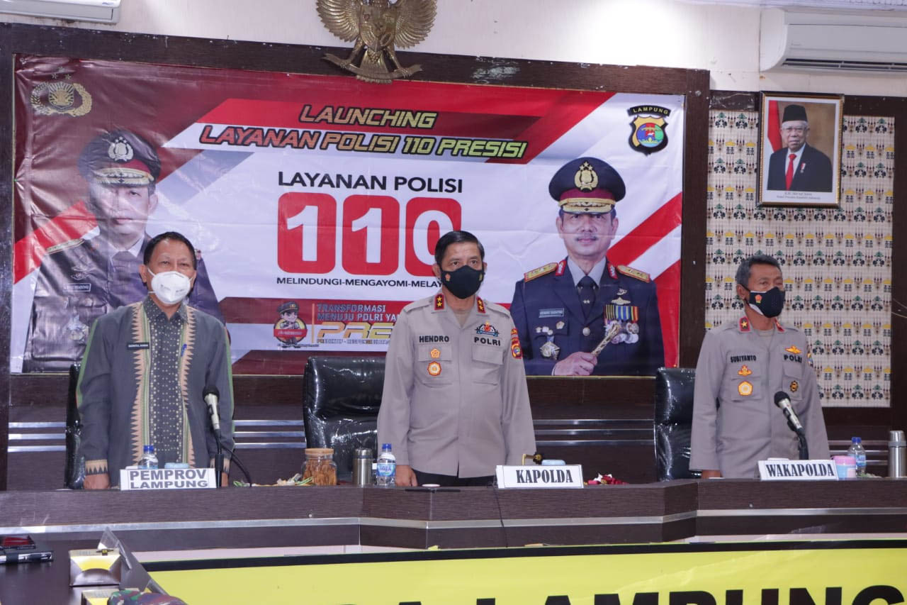 Bandar Lampung, etalaseinfo.com (SMSI) – Kapolda Lampung ( Irjen Pol Drs.Hendro Sugiatno,MM. ) Dan Wakapolda Lampung ( Brigjen Pol Drs.Subiyanto.) mengikuti pelaksanaan kegiatan Launching Layanan Polisi 110 melalui sarana Vicon. Hadir Juga PJU Polda Lampung.di ikuti oleh Kapolres/ta jajaran melalui sarana vicon masing – masing.