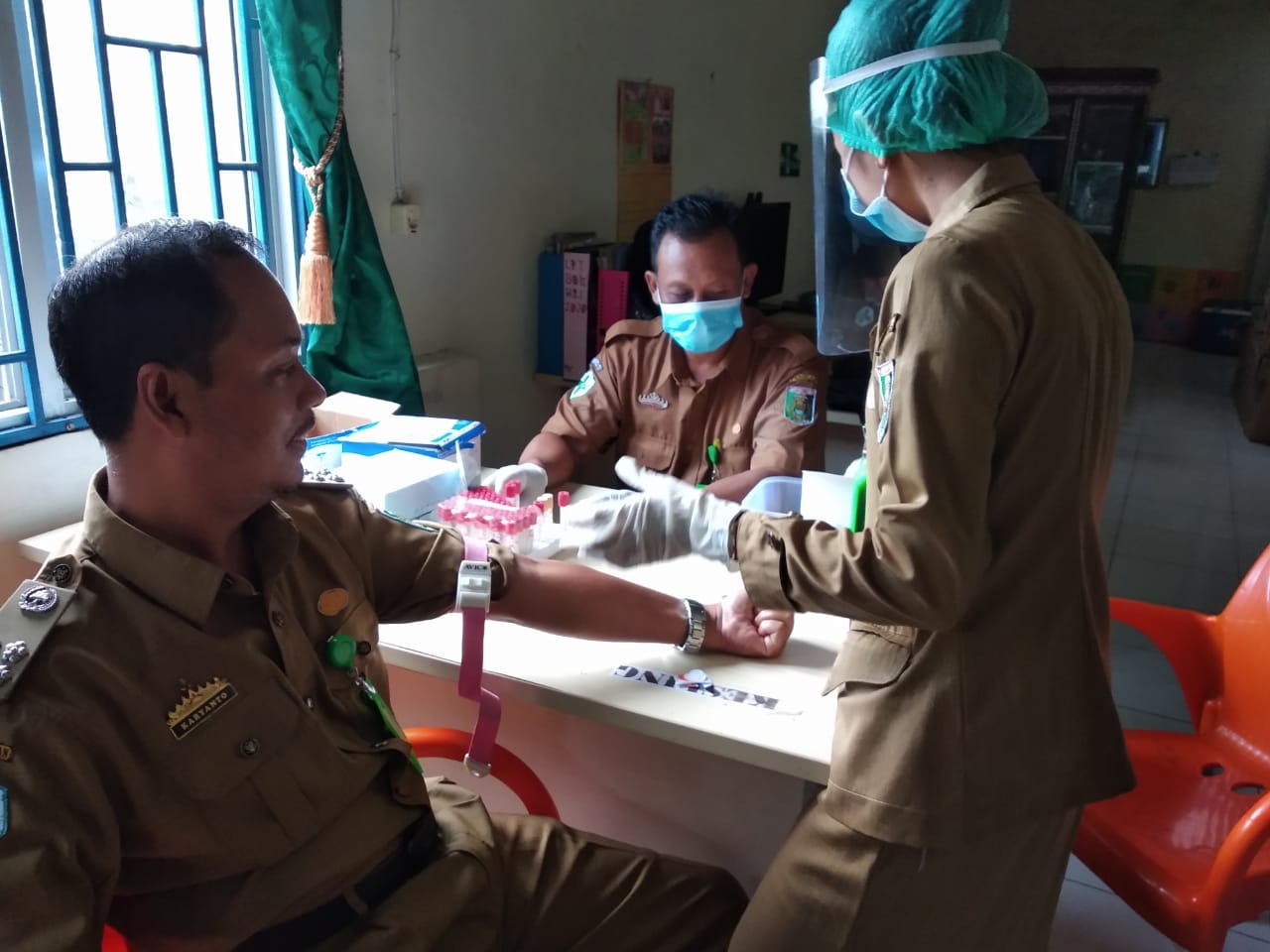 “Tujuan dalam pemeriksaan ini, tidak lain untuk mengetahui atau memastikan bahwa petugas Puskesmas Karyatani memang benar – benar sehat dan tidak tertular Covid-19, itu terbukti dari hasil Laboratorium kesemua pegawai hasilnya non reaktif.