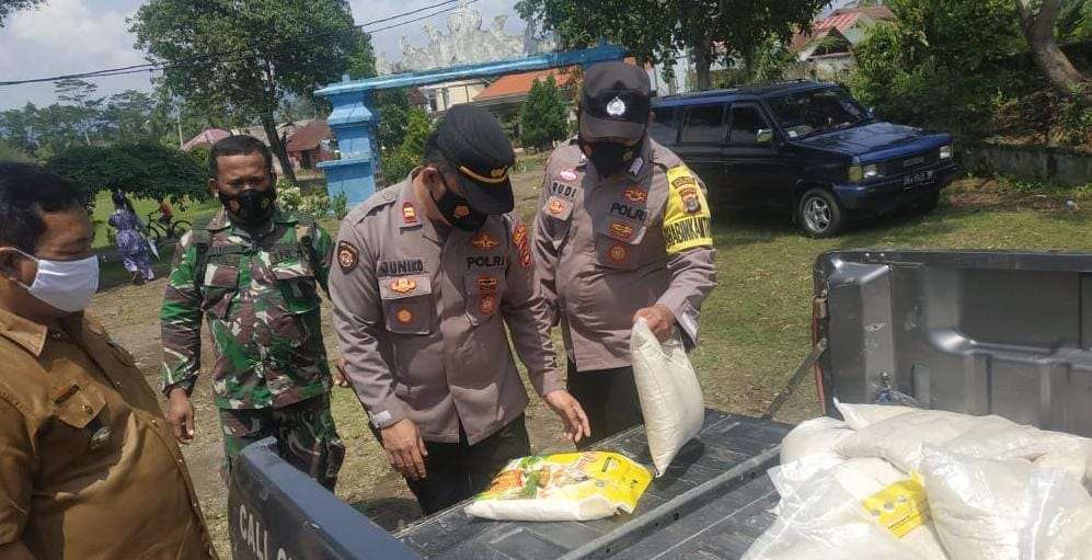Kasubbag Humas Polres Tanggamus Iptu M. Yusuf, SH mengatakan, penyaluran Bansos melalui Kapolsek Wonosobo Iptu Juniko kepada panitia siaga bencana Kecamatan Wonosobo di dapur umum bersamaan Bansos TNI Koramil setempat.