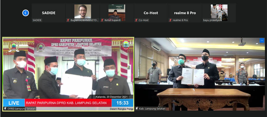 Pengesahan Raperda menjadi Perda itu berlangsung dalam rapat paripurna DPRD Kabupaten Lampung Selatan yang ditandai dengan penandatanganan berita acara persetujuan antara Bupati Lampung Selatan dan DPRD Kabupaten Lampung Selatan secara virtual.