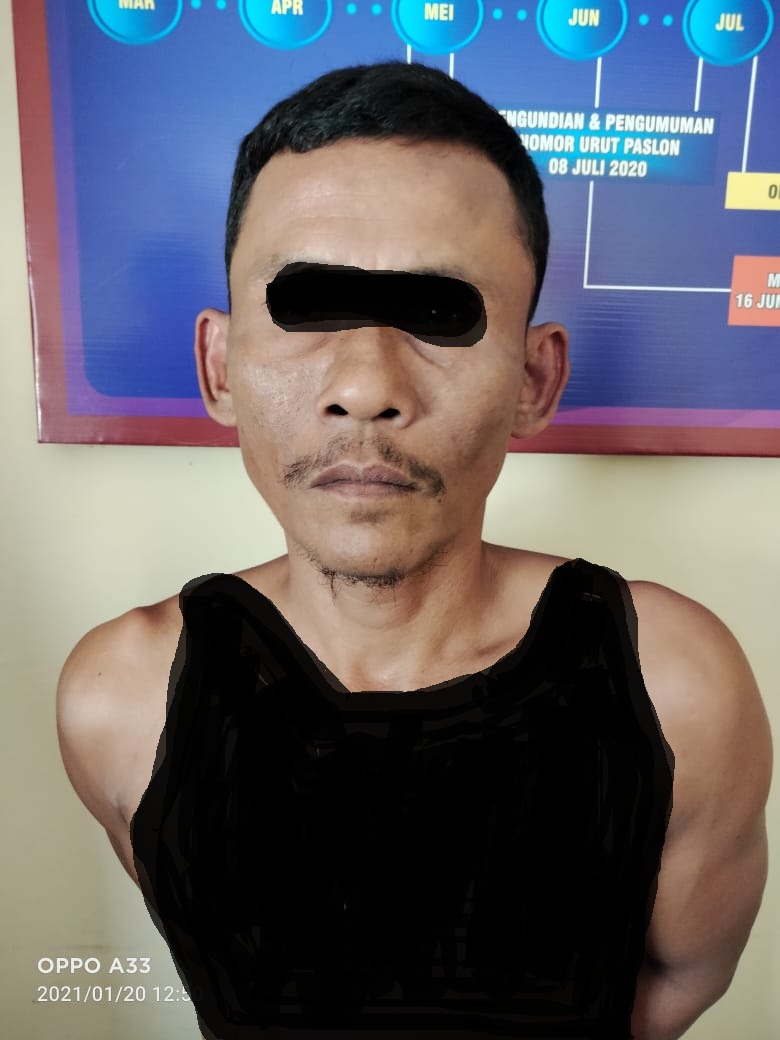 Kapolsek Gunung Sugih Iptu Widodo Rahayu, SH, mewakili Kapolres Lampung Tengah AKBP Popon Ardianto Sunggoro, S.Ik., S.H menjelaskan, membenarkan dihadapan awak media “Bahwa anggotanya telah menangkap Pelaku MRM (44), warga Dusun V Kampung Bulusari seorang Ayah yang tega mencabuli anak tirinya”, Kamis (21/1/2021).