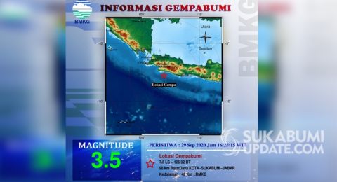 Kedalaman gempa berada di 28 kilometer sebelah selatan Kabupaten Sukabumi.