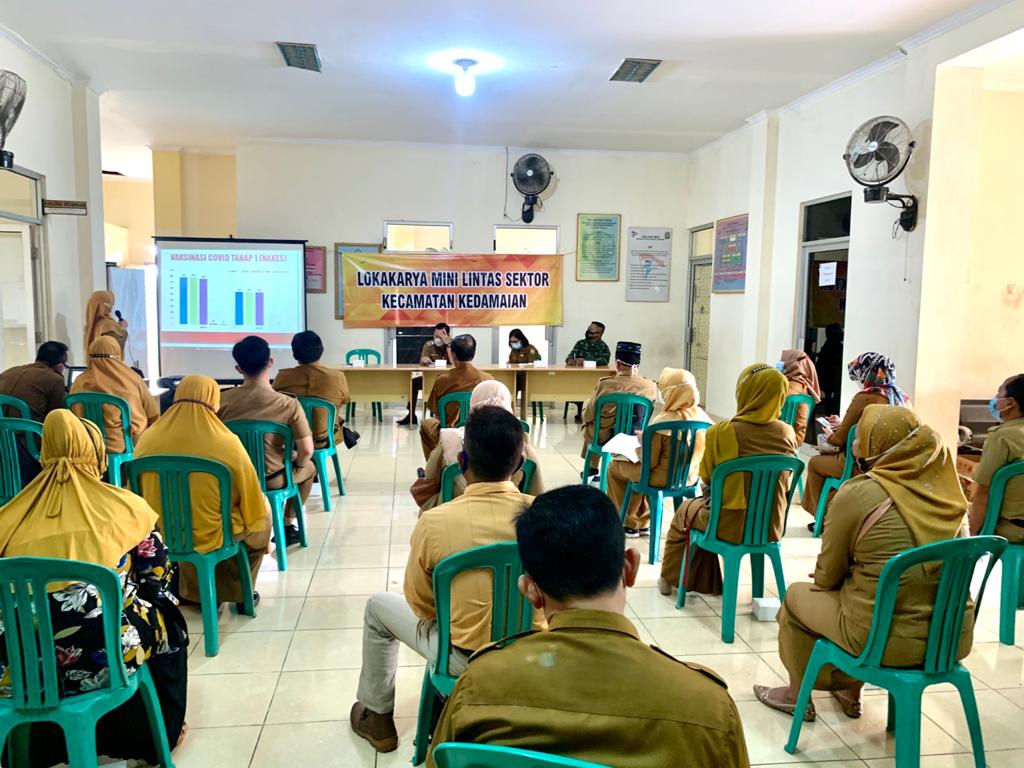 Babinsa Koramil 410-04/TKT Kodim 0410/KBL Pelda Usep Sopwan menghadiri kegiatan Lokakarya Mini Lintas Sektor Kecamatan Kedamaian. Kegiatan berlangsung di Aula Kantor Kec. Kedamian Jln. Ratu Lengkara Kel. Bumi Kedamaian Kec. Kedamaian Kota Bandar Lampung, Senin (22/02/2021). Seperti dilaporkan lampungvisual.com, Jaringan siberindo.co.