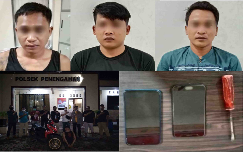Bersama tiga orang pelaku, petugas juga mengamankan barang bukti diantaranya, 1 unit sepeda motor merk Honda Beat warna merah hitam dengan nomor polisi BE 6334 DY, Noka : MH1JM8114LK271659, Nosin : JM81E1273549 an. Saniah, 2 buah handphone Android merek OPPO tipe A57 dan merek Redmi 8A serta 1 buah obeng pipih bergagang merah. (Humas)