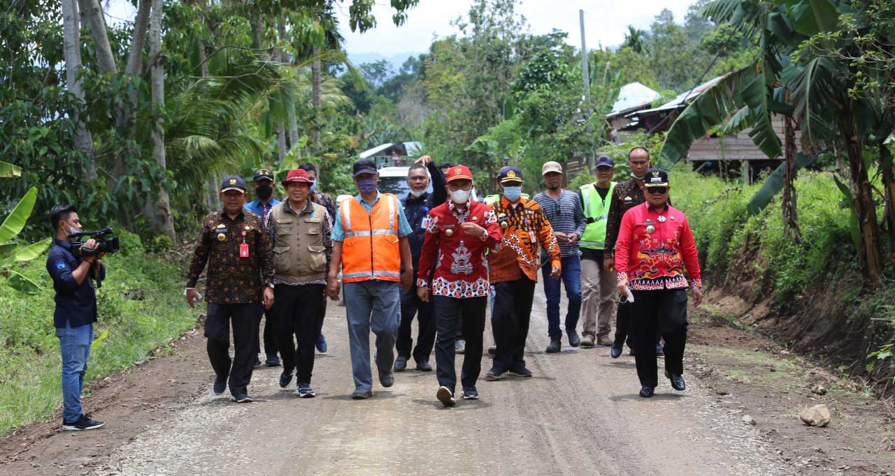 Lambar, etalaseinfo (SMSI) – Bupati dan Wakil Bupati Lampung Barat (Lambar) Hi. Parosil Mabsus – Drs. Mad Hasnurin (PM) meninjau pembangunan ruas jalan penghubung Pekon Sukabanjar – Pekon Ujung Rembun, Kamis (21/10/2021).