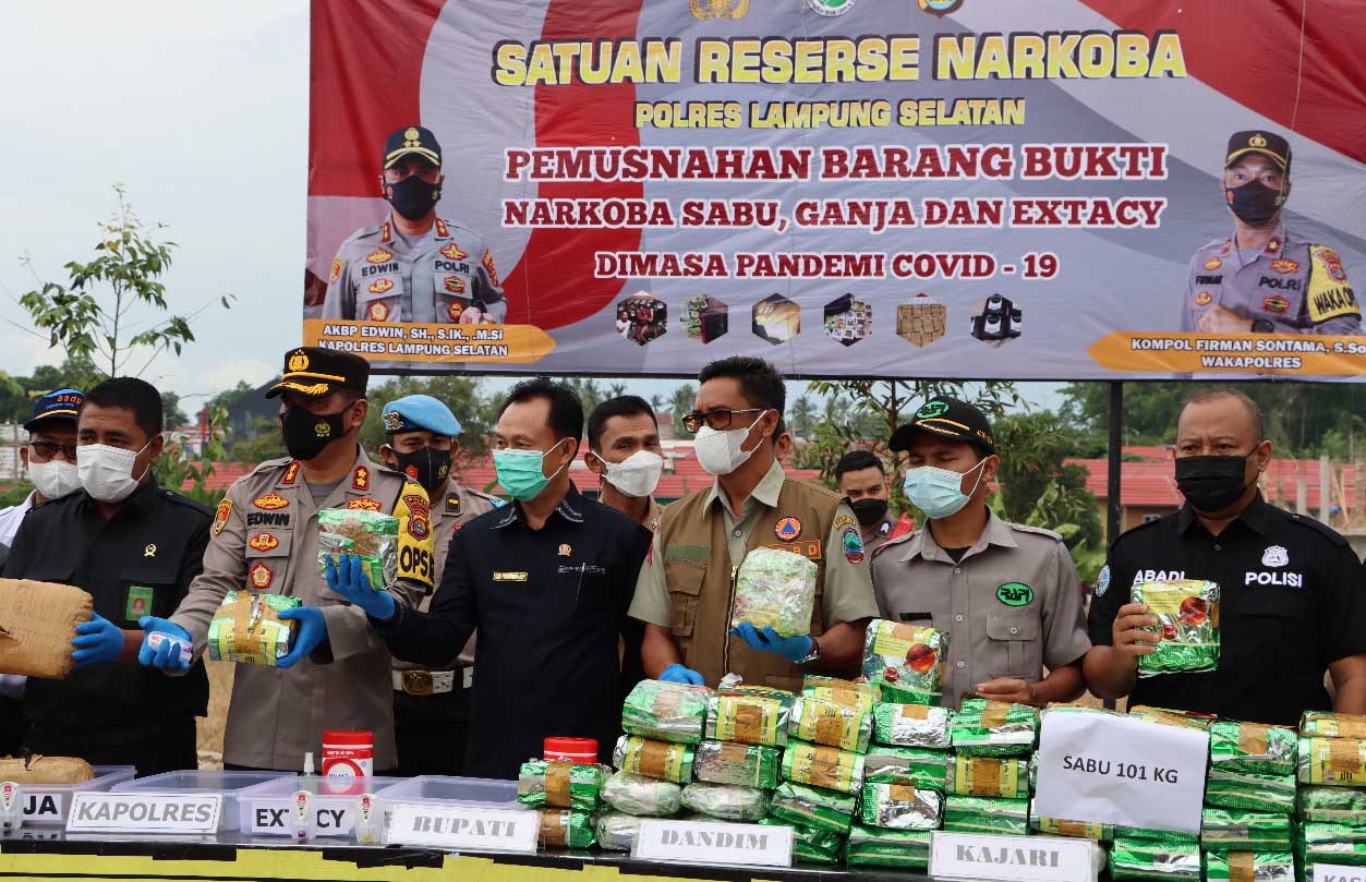 Kapolres Lampung Selatan AKBP Edwin SH.,S,ik.,M.Si mengungkapkan, Narkoba yang dimusnahkan tersebut adalah merupakan hasil kerja keras petugas SatNarkoba Polres Lampung Selatan selama kurun waktu 2 bulan terakhir.