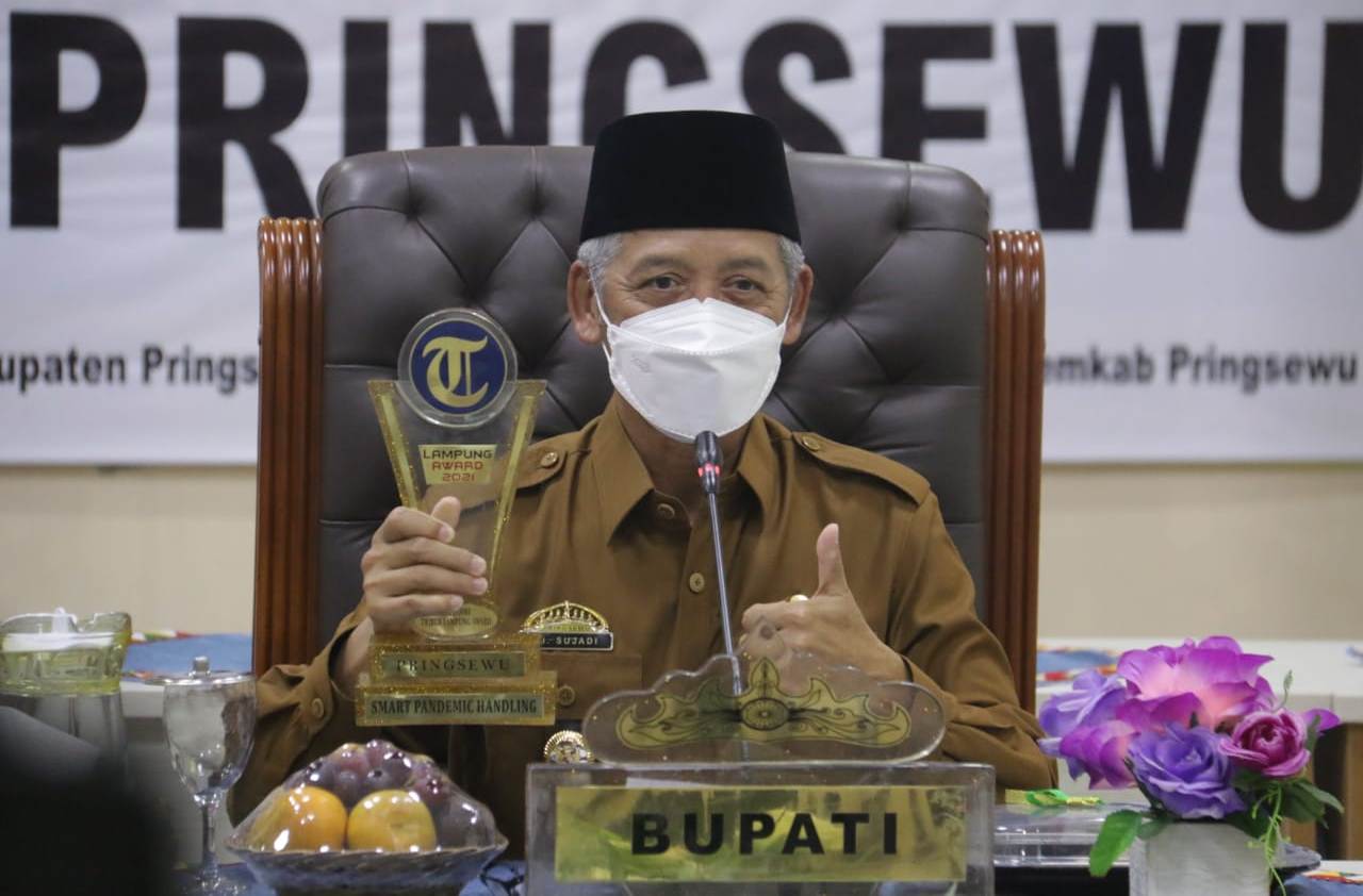 Bupati Pringsewu Sujadi mengatakan penghargaan yang diraih tersebut sejatinya merupakan hasil kerja keras seluruh pihak yang saling bersinergi satu sama lain dalam menangani pandemi Covid-19 di Kabupaten Pringsewu.