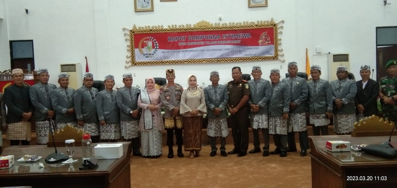 Dewan Perwakilan Rakyat Daerah (DPRD) Kabupaten Tulangbawang Barat menggelar rapat Paripurna Istimewa dalam rangka memperingati Hari Jadi ke 59 Provinsi Lampung, tahun 2023 yang mengusung tema “Lampung bersinergi, Lampung Berprestasi”.