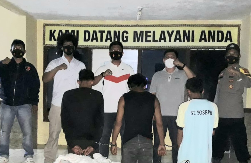 Sambungnya, setelah melihat kejadian tersebut saksi mengubungi Polsek Limau sehingga ketiga pelaku menghentikan perbuatan mereka dan akhirnya ditangkap tanpa perlawanan.
