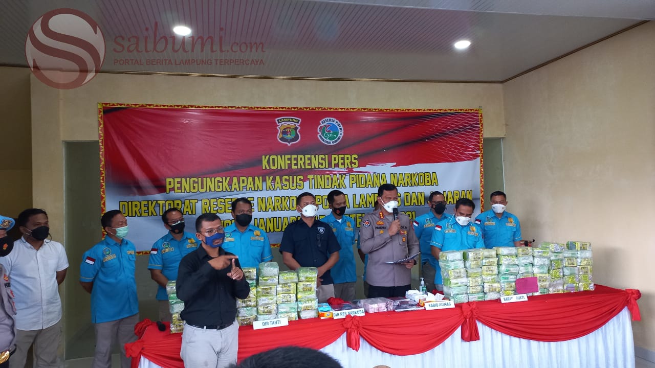 Saibumi.com (SMSI), Bandar Lampung – Polda Lampung ungkap kasus perkara narkotika dengan barang bukti ratusan kilogram narkotika selama periode Januari-September 2021.