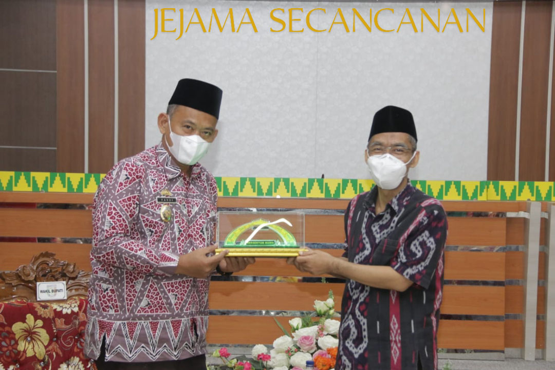 KH.Abdul Hakim, anggota DPD-RI dari Provinsi Lampung didampingi anggota DPRD Provinsi Lampung dari Pringsewu Zunianto, Tenaga Ahli DPD-RI Aep Susanto, M.Si., Pembina GDE Dr.Aries Muftie, Direktur Eksekutif Erick Firmansyah Muftie, Sekretaris Corporate Naufal Wiratama Azhari, S.H., Kepala Program Studi Kampus Desa Emas Drs.Amir Yahya, M.M., Inkubator Bisnis GDE Upik Kismono, S.T., Pakar Ahli GDE Slamet Wuryadi, M.Si., serta GDE Provinsi Lampung Erwin Syarif dan Imam Masyhuda, diterima oleh Wakil Bupati Pringsewu Dr.Fauzi beserta Asisten Pemerintahan dan Kesra Purhadi, M.Kes. dan kepala OPD terkait serta anggota DPRD Pringsewu di Aula Utama pemkab setempat, Kamis (23/09/21).