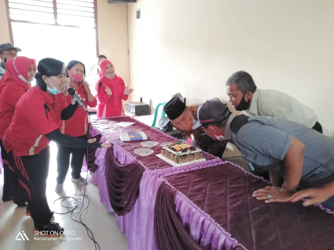 PRINGSEWU, etalaseinfo.com – SMP Negeri 4 Pringsewu genap berusia 21 tahun. Memperingati momen bersejarah tersebut, digelar acara sederhana berupa tasyakuran dan tiup lilin yang hanya dihadiri jajaran dewan guru dan karyawan serta komite sekolah juga pengurus OSIS di aula sekolah tersebut, Jumat (23/10/20).