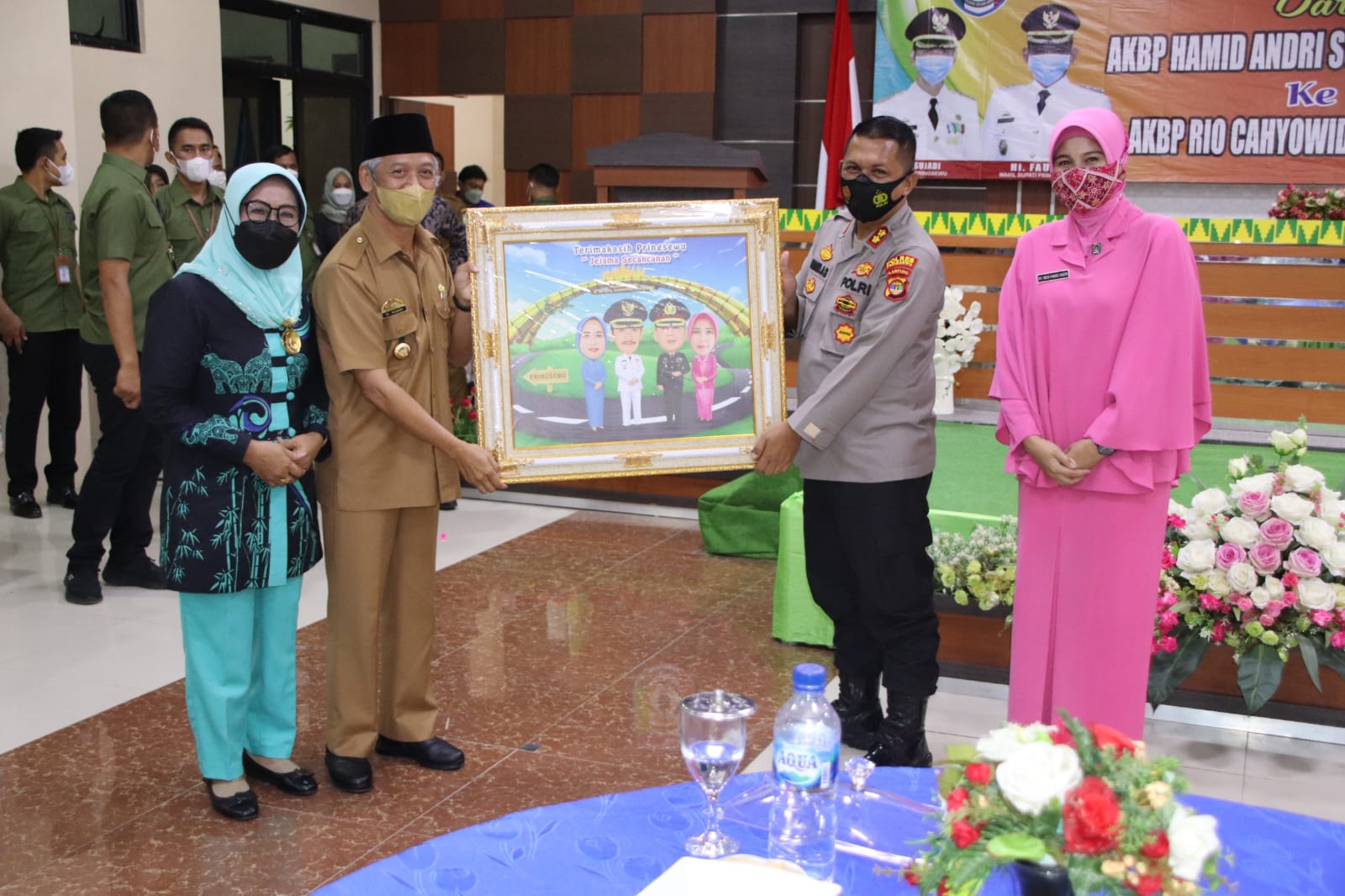 Pringsewu, etalaseinfo (SMSI) – Pemerintah daerah Kabupaten Pringsewu menggelar Acara pisah sambut Kapolres Pringsewu AKBP Hamid Andri Soemantri dengan AKBP Rio Cahyowidi di aula utama kantor Pemkab setempat. Selasa (23/11/21)