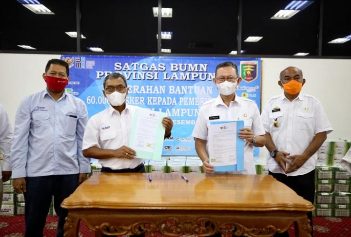 Bandar Lampung – Pemerintah Provinsi Lampung menerima bantuan 60 ribu masker dari Satuan Tugas (Satgas) BUMN Provinsi Lampung, dalam rangka percepatan penanganan COVID-19.