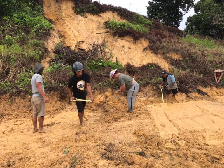 Salah satu tokoh masyarakat desa Jelarai, Tasa Gung mengungkapkan, puluhan warga berbekal alat seadanya langsung gotong royong membersihkan material longsoran yang menutup satu-satunya akses jalan tersebut.