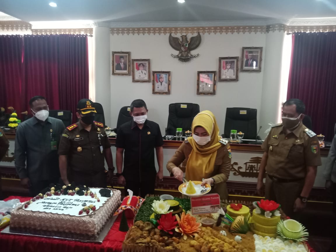 Dalam peringatan tersebut, dilakukan pemotongan tumpeng, oleh Bupati, Forkopimda dan seluruh jajaran yang ada. (Kominfo)