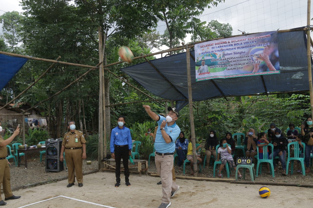 Pada kesempatan itu, Wakil Bupati Pringsewu juga memberikan bantuan bola kepada pihak panitia kegiatan, serta dilanjutkan dengan servis atau pemukulan bola perdana sebagai pembuka pertandingan. Dalam sambutannya Wabup menyampaikan terimakasih serta apresiasi kepada Remaja Lingkungan Purwodadi yang telah berpartisipasi dalam memeriahkan HUT Kabupaten Pringsewu, kendatipun dengan pembatasan-pembatasan serta penerapan protokol kesehatan.