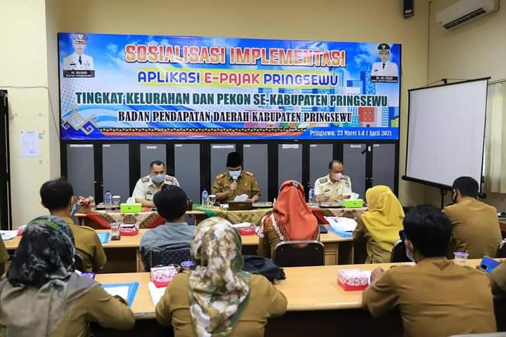 Pringsewu, etalaseinfo.com (SMSI) – Sekretaris Daerah Kabupaten Pringsewu Drs. Heri Iswahyudi, M.Ag., Membuka Sosialisasi Implementasi Aplikasi E-Pajak Pringsewu Tingkat Kelurahan dan Pekon Se-Kabupaten Pringsewu yang diselenggarakan di Kantor Bapenda Kabupaten Pringsewu, Selasa (23/03/2021).