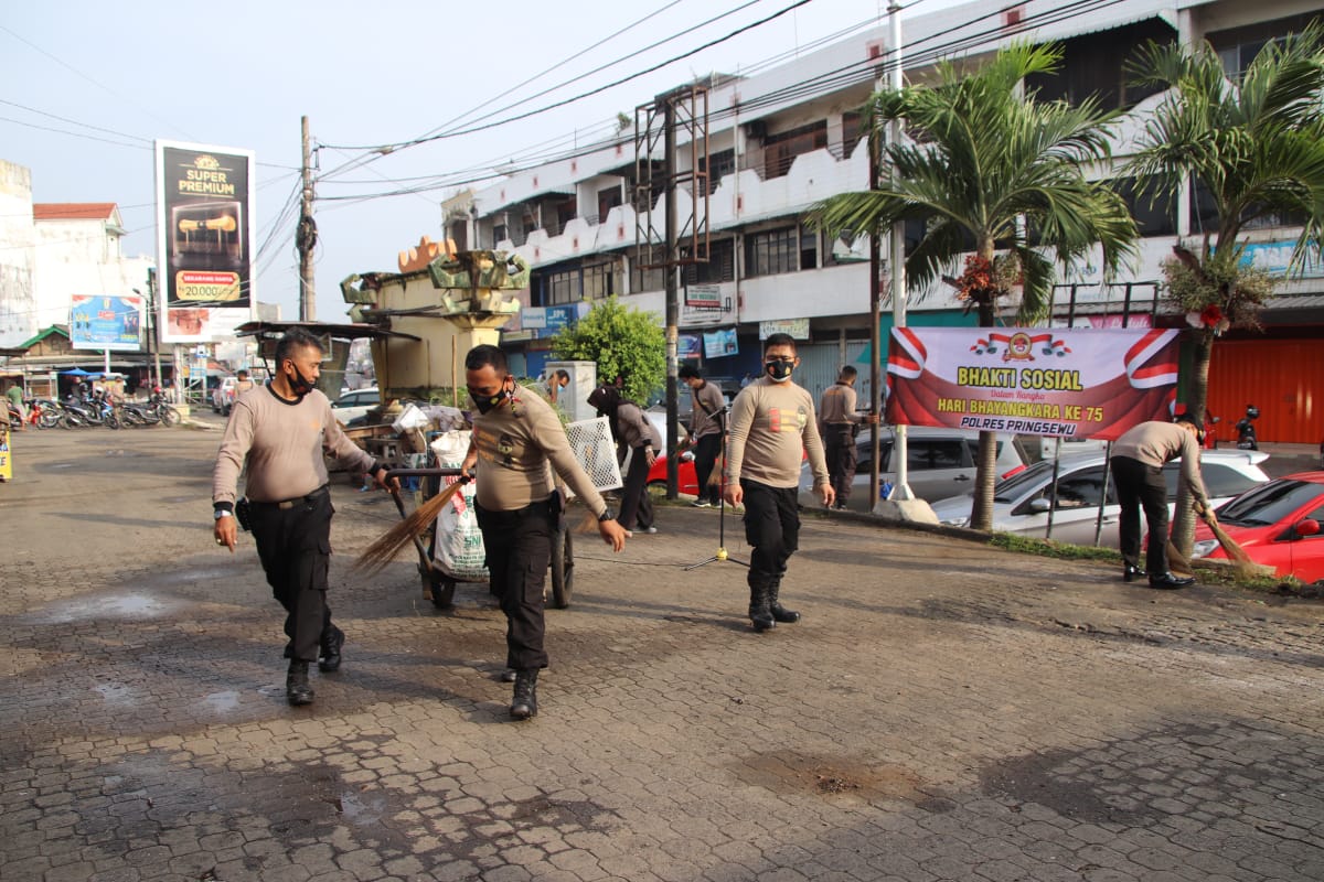 Pringsewu, etalaseinfo.com SMSI) – Polres pringsewu dan Polsek jajaran hari ini Kamis (24/6/21) secara serentak menggelar bhakti sosial memberihkan lingkungan. Kegiatan dilaksanakan dalam rangka menyambut hari bhayangkara ke-75 tahun 2021 pada 1 Juli 2021 mendatang.