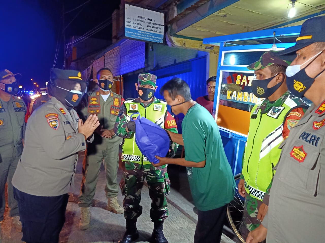 menghimbau kepada masyarakat yang berdagang maupun yang membeli untuk patuhi Prokes, jaga jarak, pakai masker dan tidak berkerumun ( apabila membeli makan agar di bawa pulang dan tidak makan di tempat makan).