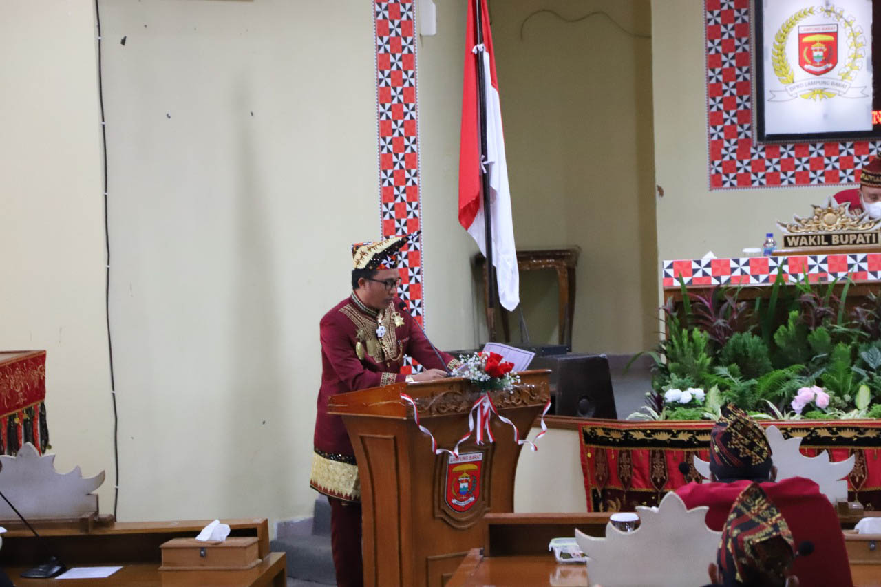 Capaian pitu program itu ia sampaikan melalui pidatonya saat melakukan rapat paripurna bersama Dewan Perwakilan Rakyat Daerah (DPRD) Lampung Barat (Lambar) dalam rangka menyambut HUT Kabupaten Lambar Ke-30 bertempat di ruang sidang Maghgasana DPRD setempat, Kamis (23/9/2021).