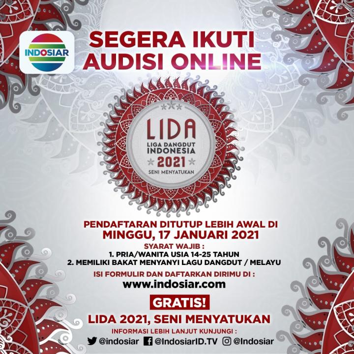Informasi lebih lanjut mengenai audisi online LIDA 2021 dapat diakses melalui website resmi di www.indosiar.com, Instagram: @indosiar, Twitter: @indosiardanFacebook: IndosiarID.TV.