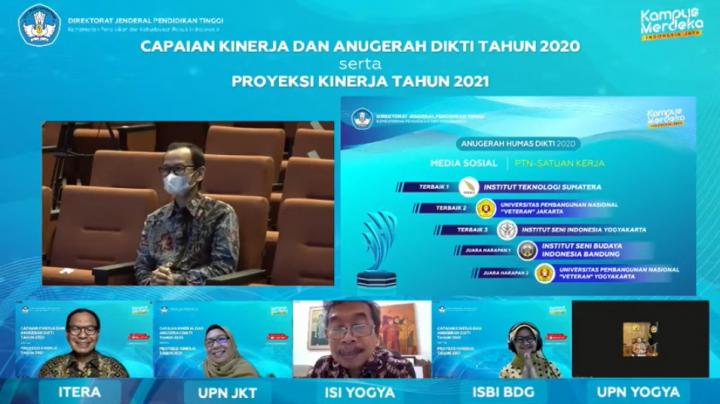Lampung Selatan – Institut Teknologi Sumatera (ITERA) memborong empat penghargaan dalam Anugerah humas pendidikan tinggi (Dikti) Kementerian Pendidikan dan Kebudyaan tahun 2020, yang diselenggarakan secara virtual, Rabu malam, 23 Desember 2020.