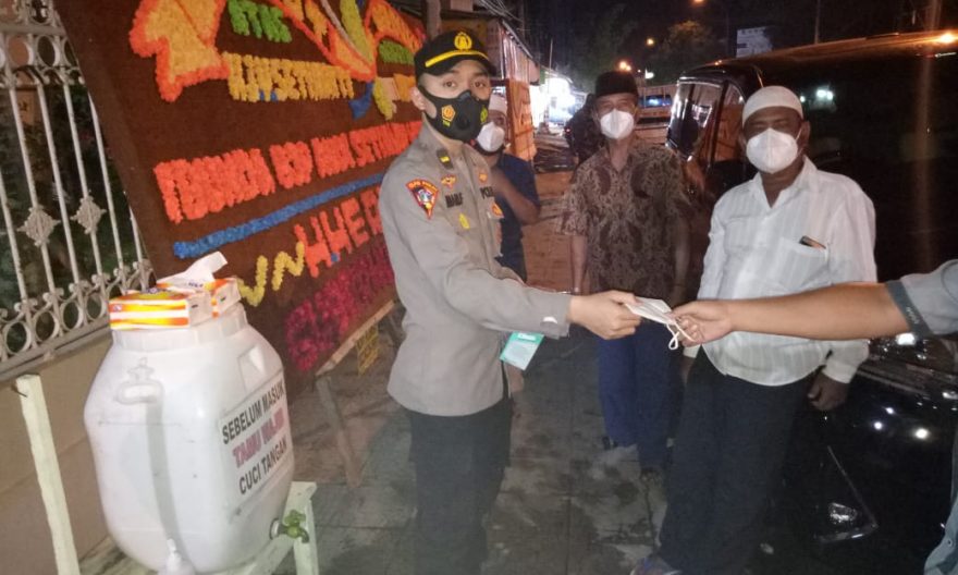 Tak kenal lelah, aparat yang bertugas di lokasi senantiasa menghimbau tamu yang hadir untuk tetap menjaga jarak. Tak luput, mengatur tempat duduk berjarak baik di lokasi rumah duka, masjid hingga lokasi pemakaman.