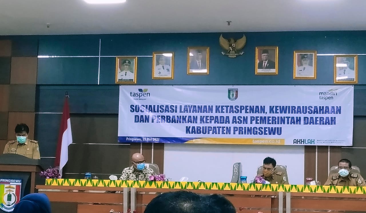 Pringsewu, etalaseinfo.com (SMSI) – Bekerjasama dengan PT.Taspen (Persero), Pemerintah Kabupaten Pringsewu mengadakan sosialisasi aspek-aspek kepegawaian di aula utama pemkab setempat, Selasa (25/5/21).