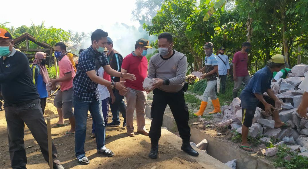 Kapolsek menambahkan, atas pelaksanaan gotong royong tersebut dapat terselesaikan pendirian dapur rumah dan pondasi.