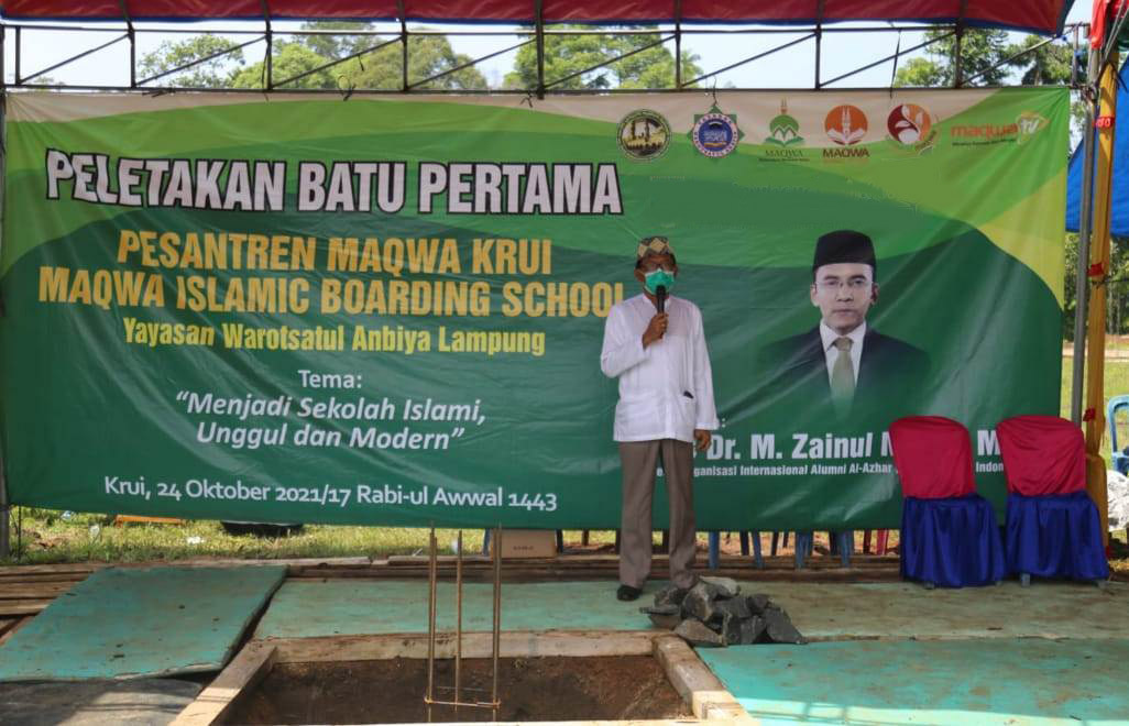 Bupati Pesisir Barat DR. Drs. Agus Istiqlal SH., MH. yang hadir langsung dalam acara peletakan batu pertama mengucapkan selamat datang kepada Ketua OIAA beserta rombongam dan berharap pembangunan pondok pesantren Maqwa berjalan dengan lancar serta tidak ada hambatan dalam proses pembangunannya.